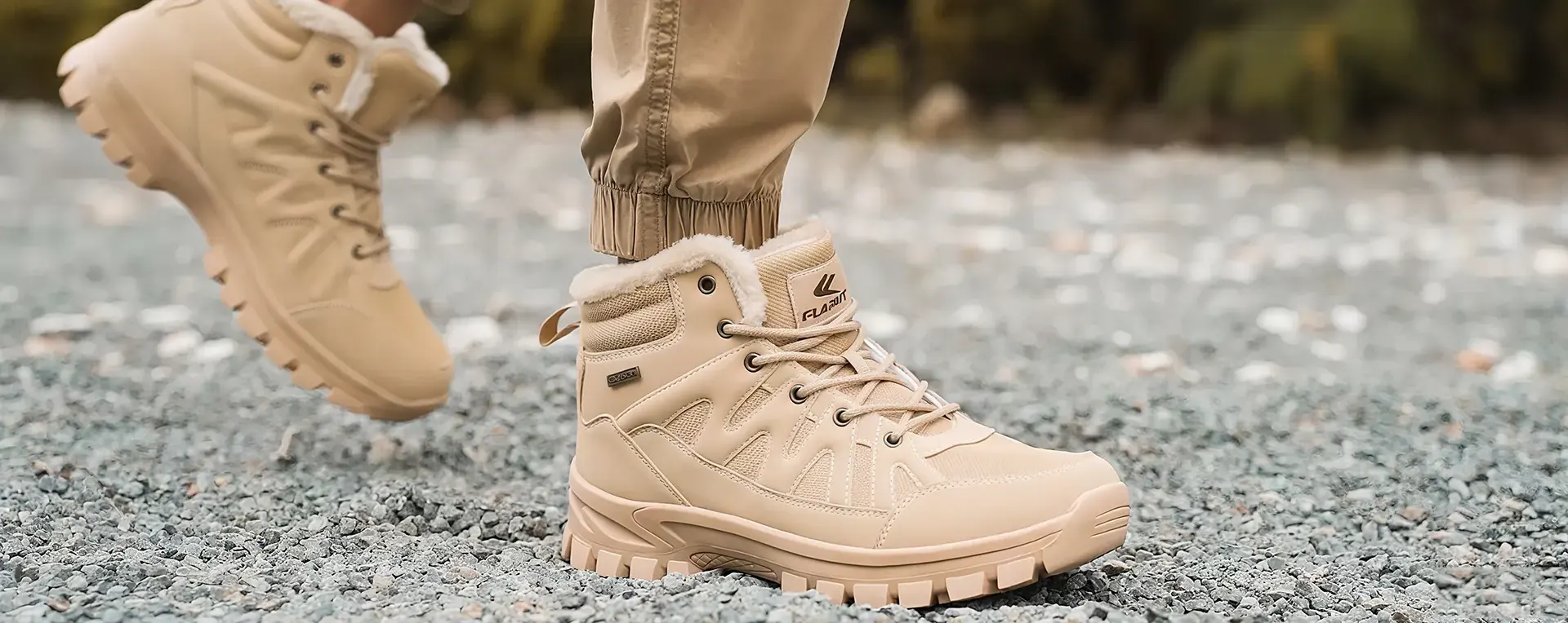 FLARUT Mens Snow Boots Insulated Fur Liner Winter Warm Hiking Shoes Walking Sneaker(M-brown)
